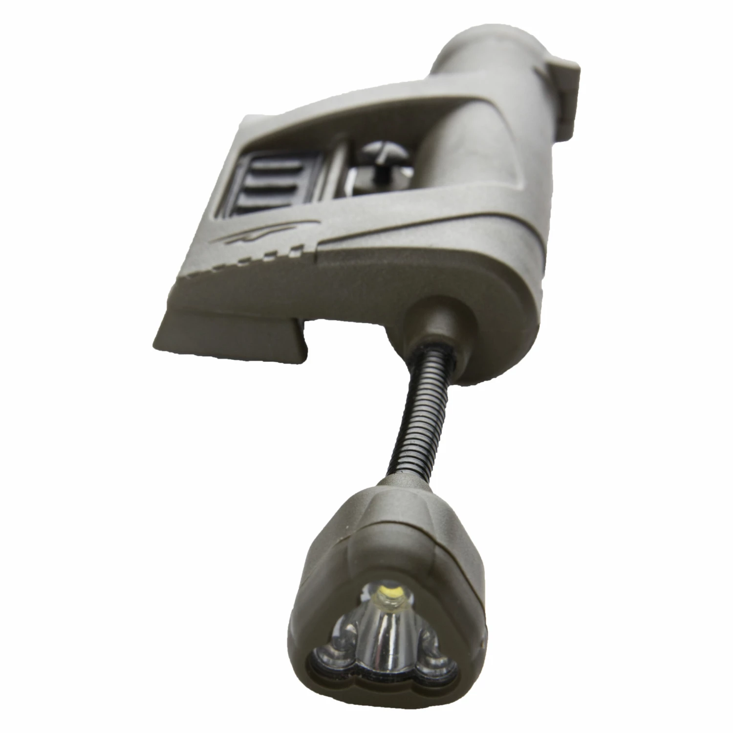 Die Princeton Charge MPLS ist eine neue Helmlampe mit flexi-neck Design. Dadurch kann der Leuchtkopf beliebig gedreht und ideal ausgerichtet werden. Eine weiße Maxbright LED leuchtet den Nahbereich hell aus und kann fixiert auch auf größere Entfernungen wirken. Wahlweise kann per Knopfdruck auf rot, blau und Infrarot gewechselt werden. Die Montage erfolgt mit dem modularen Befestigungssystem problemlos am Helm, Molle Schlaufen oder einer OPS-Core Rail. Zum Betrieb wird eine AA Batterie benötigt.