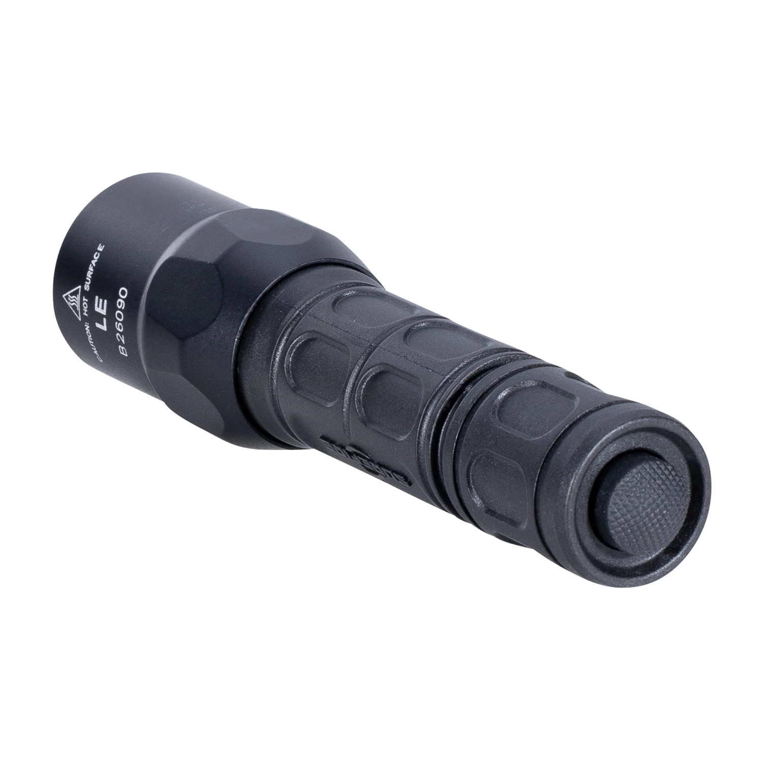 Die SureFire Taschenlampe G2X LE ist speziell für Behörden entwickelt und kommt mit hocheffizienter LED-Leuchte. Diese kann jederzeit nach Bedarf zwischen sehr hellen 600 Lumen und energiesparenden 15 Lumen eingestellt werden. Durch einen Druck auf den Endkappenschalter wird das Dauerlicht im High-Modus eingeschalten, durch zweimaliges Drücken wird der Low-Dauermodus aktiviert. Um zwischen den Modi zu wechseln, musst Du den Schalter innerhalb von zwei Sekunden erneut betätigen. Das aus robustem Nitrolon gefertigte Gehäuse bietet hervorragenden Grip und ist korrosions- sowie abnutzungsresistent.
