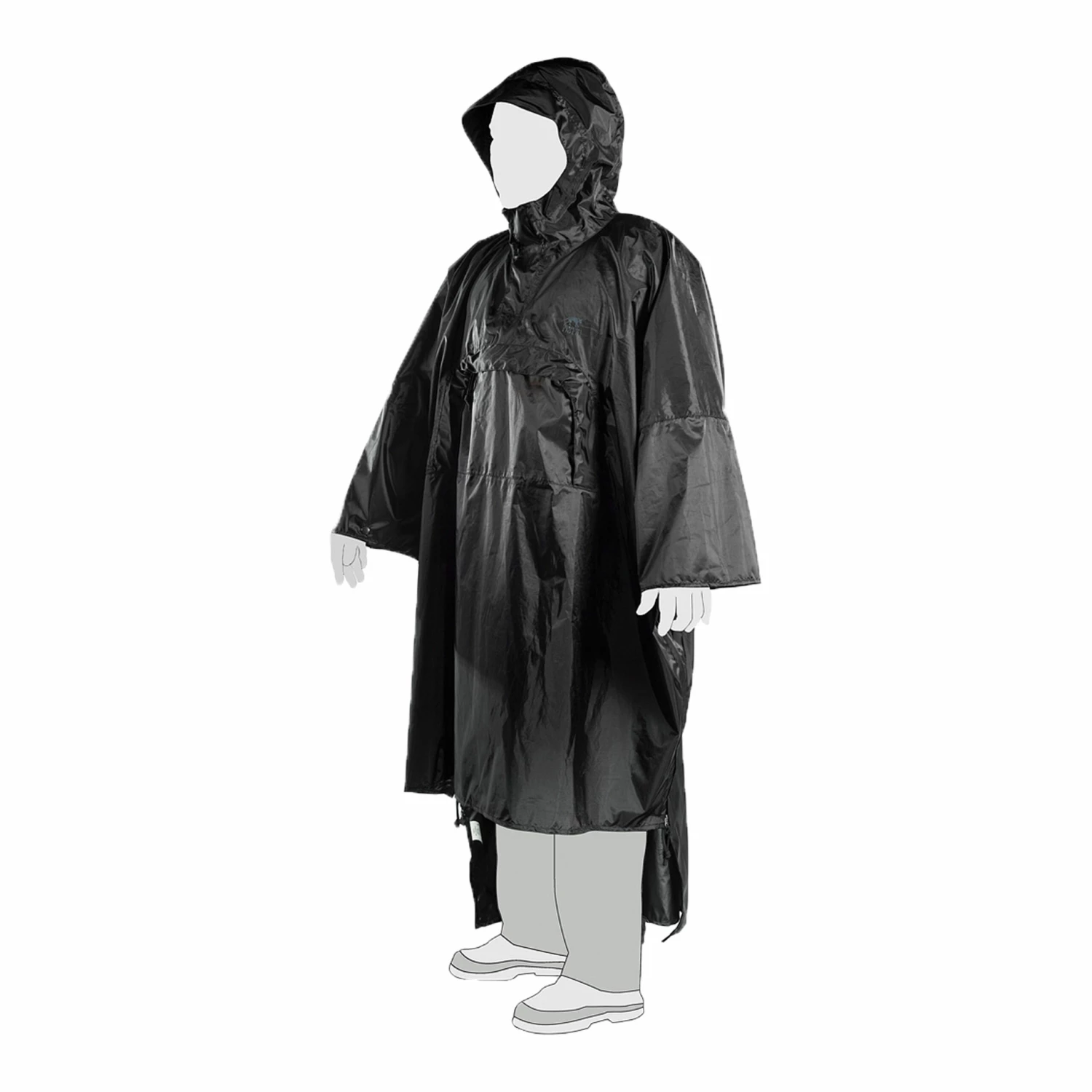 Wasserdichter Regenponcho mit regulierbarer Kapuze. Die in der Front befindliche Reißverschluss-Eingrifftasche erleichtert den Zugriff auf Front Panel und Chest Rigs. In den Seitennähten versteckte Zweiwegereißverschlüsse ermöglichen eine Anpassung zur besseren Belüftung oder Verschließen bei starkem Regen.