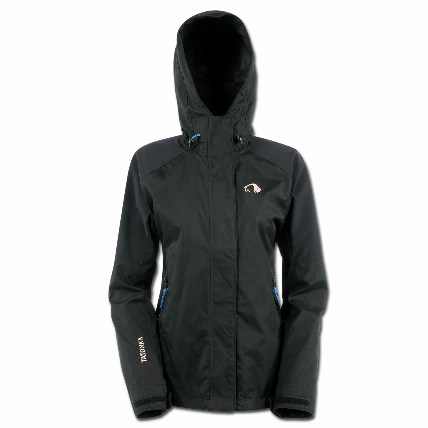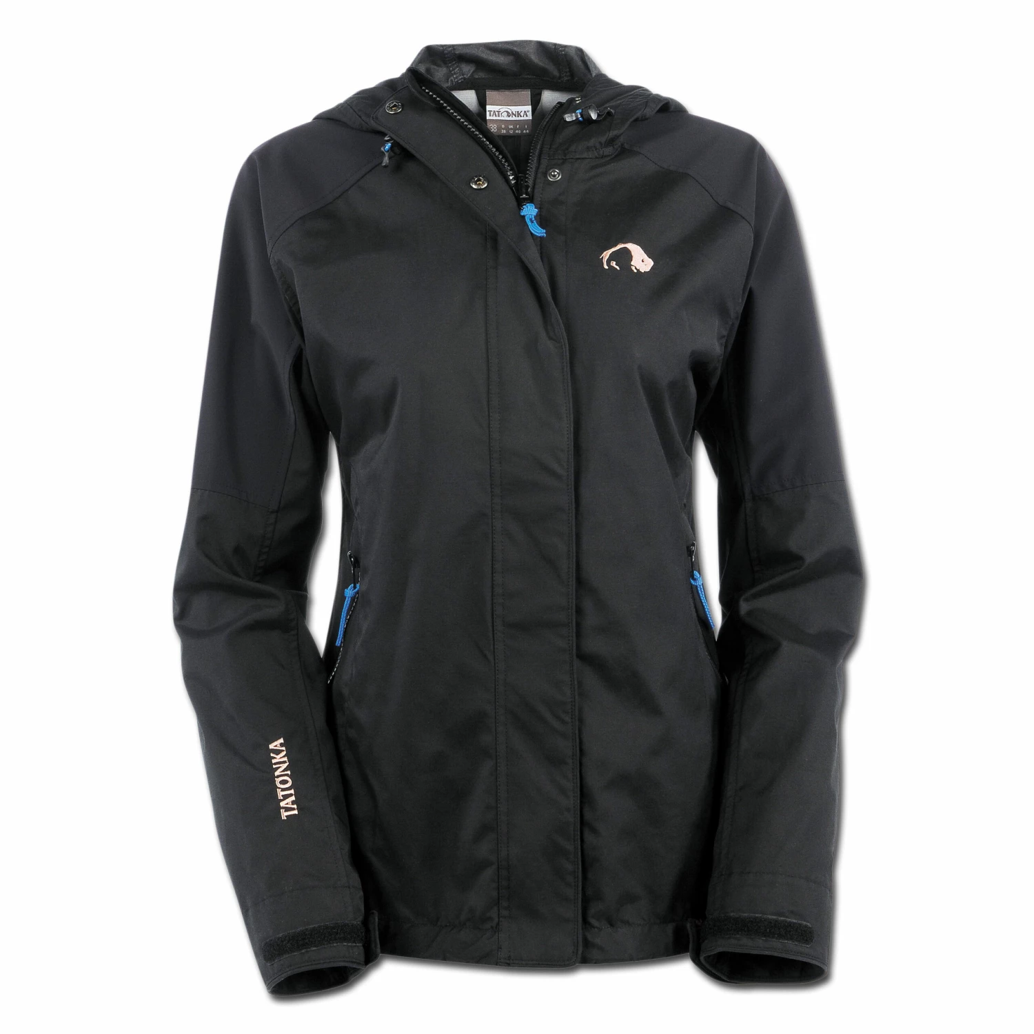 Die Tatonka Kapuzenjacke Dorum schwarz Frauen ist ideal für den Outdoor-Bereich. In zwei Reißverschluss-Einschubtaschen kannst Du persönliche Gegenstände und kleine Ausrüstung wie Taschenmesser oder -lampe verstauen. Aufgrund des verwendeten Materials trocknet die Jacke sehr schnell und ist hochgradig wasserabweisend. Neben einem weichen Kinnschutz besitzt die zweiseitig verstellbare Kapuze einen zusätzlichen Regenschutz. Die ergonomisch geformten Ärmel und die Ärmelbündchen mit Druckknöpfen gewährleisten individuellen Komfort. Wasserabweisende Reißverschlüsse an beiden Eingriffstaschen und der durchgehende Front-Reißverschluss halten Nässe zuverlässig fern. Der Logo-Stick auf der linken Brustseite runden die Jacke optisch ab.