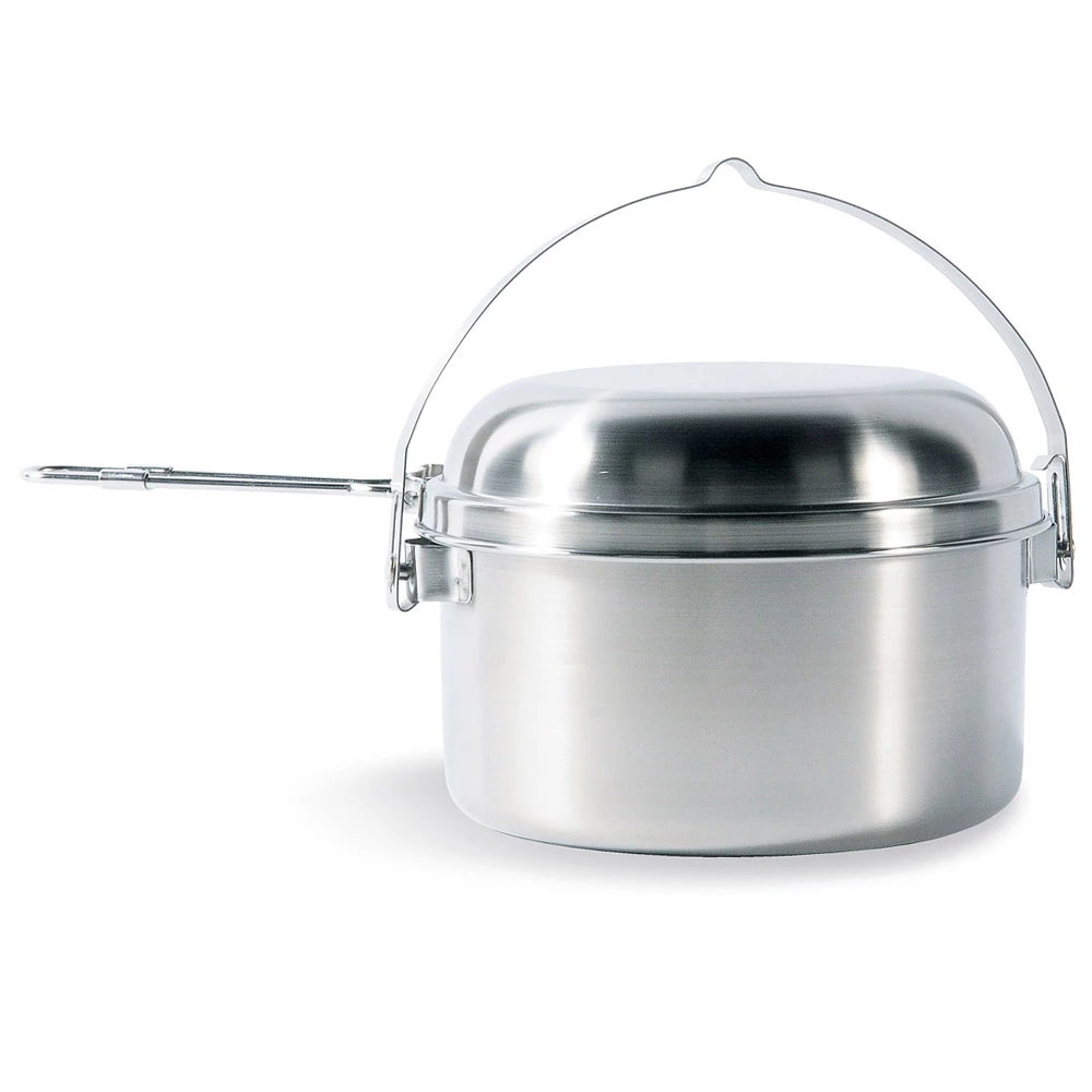 Ein leichtes Edelstahlkochset bestehend aus einem Topf und einer Pfanne, welche zugleich als Deckel oder verbesserter Teller verwendet werden kann. Der Kochtopf hat ein Volumen von 1,6 Liter, verfügt zudem über eine Volumenskala im Inneren und einen Tragehenkel. Das gesamte Set ist aus 18/8 Edelstahl gefertigt, was es besonders langlebig, robust und pflegeleicht macht.