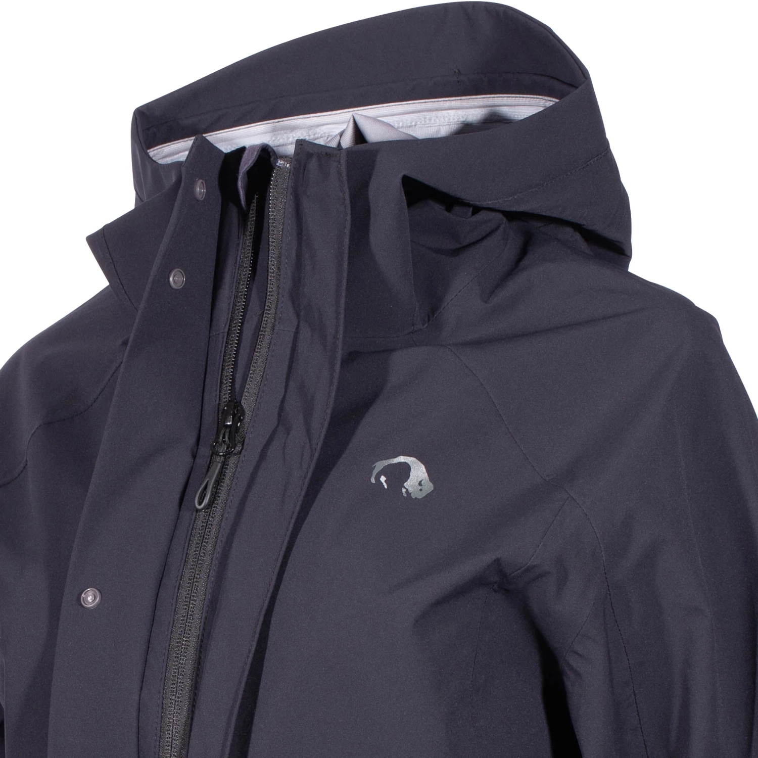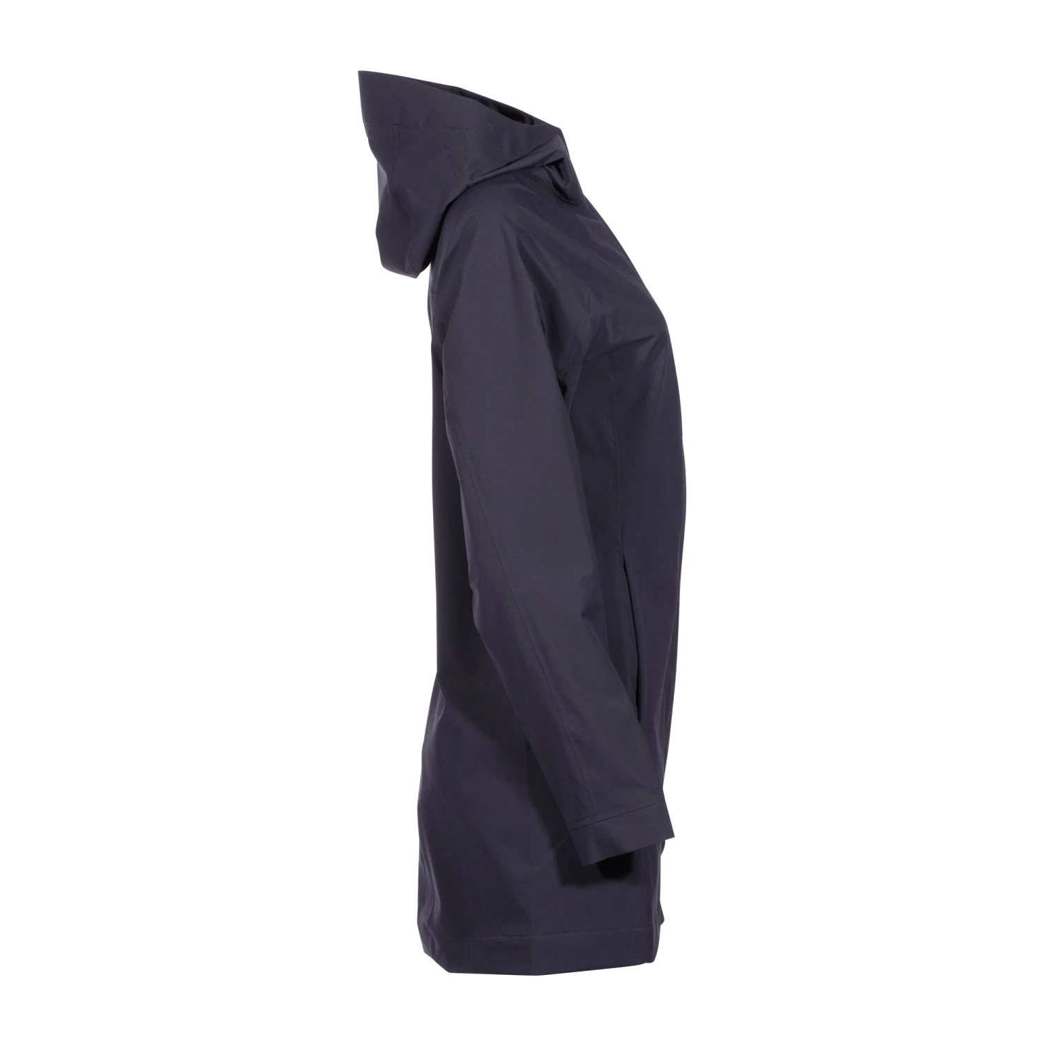 Der ungefütterte Tatonka Regenmantel Zenja Hooded Coat dark black Frauen verbindet einen alltagstauglichen Look mit zuverlässiger Hightech-Outdoor-Performance. Aufgrund des T-HardShell Pro 3L-Materials ist die Jacke nicht nur wasser- und winddicht, sondern auch atmungsaktiv. Während das integrierte 4-Wege-Stretch sie robust und abriebfest macht, garantiert die dehnbare PU-Membran Bewegungsfreiheit. Da sich der Zweiwege-Frontreißverschluss auch von unten öffnen lässt, kannst Du mehr Beinfreiheit haben, zum Beispiel auf dem Fahrrad. Die Vorderblende ist mit Druckknöpfen ausgestattet. Zudem ist an der Regenjacke eine zweiseitig verstellbare Kapuze mit Regenschutz angebracht. Der weiche Kinnschutz rundet diesen Bereich ab. Taillen- und Saumzug haben eine elastische Kordel, die Du nach individuellen Bedürfnissen einstellen kannst. Zusätzlich kannst Du in zwei Eingriffstaschen mit verdeckten Reißverschlüssen und einer Innentasche mit Reißverschluss kleine Ausrüstung und persönliche Gegenstände verstauen. An den dekorativen Ärmeln befinden sich verdeckte Elastikbündchen, die eng am Handgelenk anliegen.