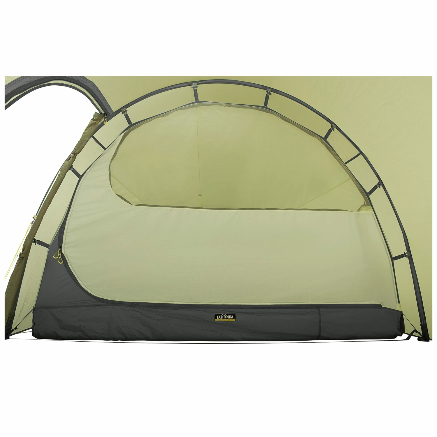 Das Tatonka Tunnelzelt Grönland 3 ist ein robustes Drei-Personen-Zelt mit großer Apsis. Daher ist es besonders gut für Touren geeignet, auf denen ausreichend Platz fürs Gepäck benötigt wird. Bei schlechtem Wetter kann die Apsis auch als Kochstelle genutzt werden.