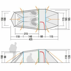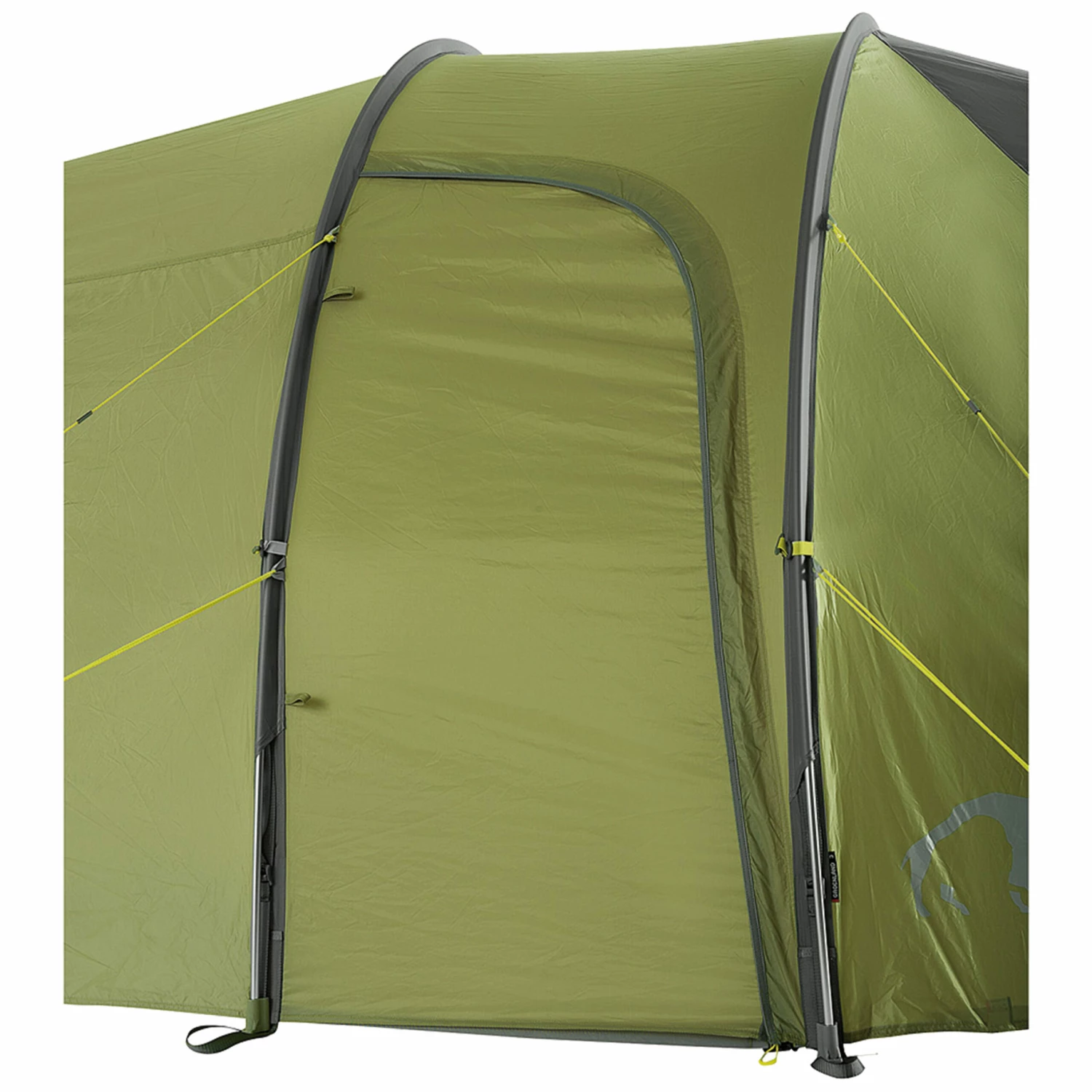 Das Außenzelt aus vierfach beschichtetem PU-Nylon hält mit einer Wassersäule von 8000 mm äußeren Einflüssen stand, während das leichte Innenzelt besonders luftdurchlässig ist. Das verwendete Zeltmaterial ist farbecht und UV-beständig, sodass Sie lange Freude daran haben. Mit einer Wassersäule von 10000 mm ist der PU-beschichtete Boden der optimale Schutz vor Nässe von unten. Innen- und Außenzelt sind miteinander gekoppelt, was für eine schnelle Aufbauzeit sorgt. Sollte das Wetter einmal zu schlecht sein, ist das Innenzelt aushängbar und kann so trocken verstaut werden. Beim nächsten Aufbau dann einfach zuerst das Außenzelt aufbauen und das Innenzelt einhängen.