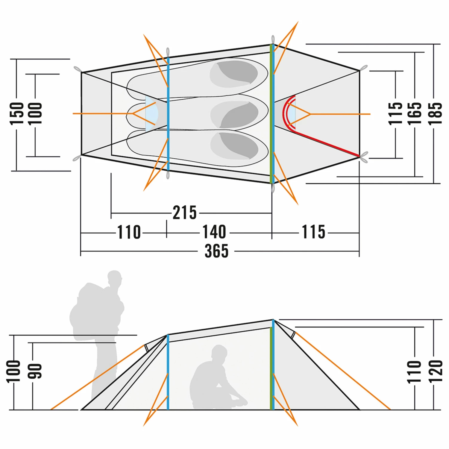 – Gewichtsoptimiertes Tunnelzelt mit zwei Gestängebögen