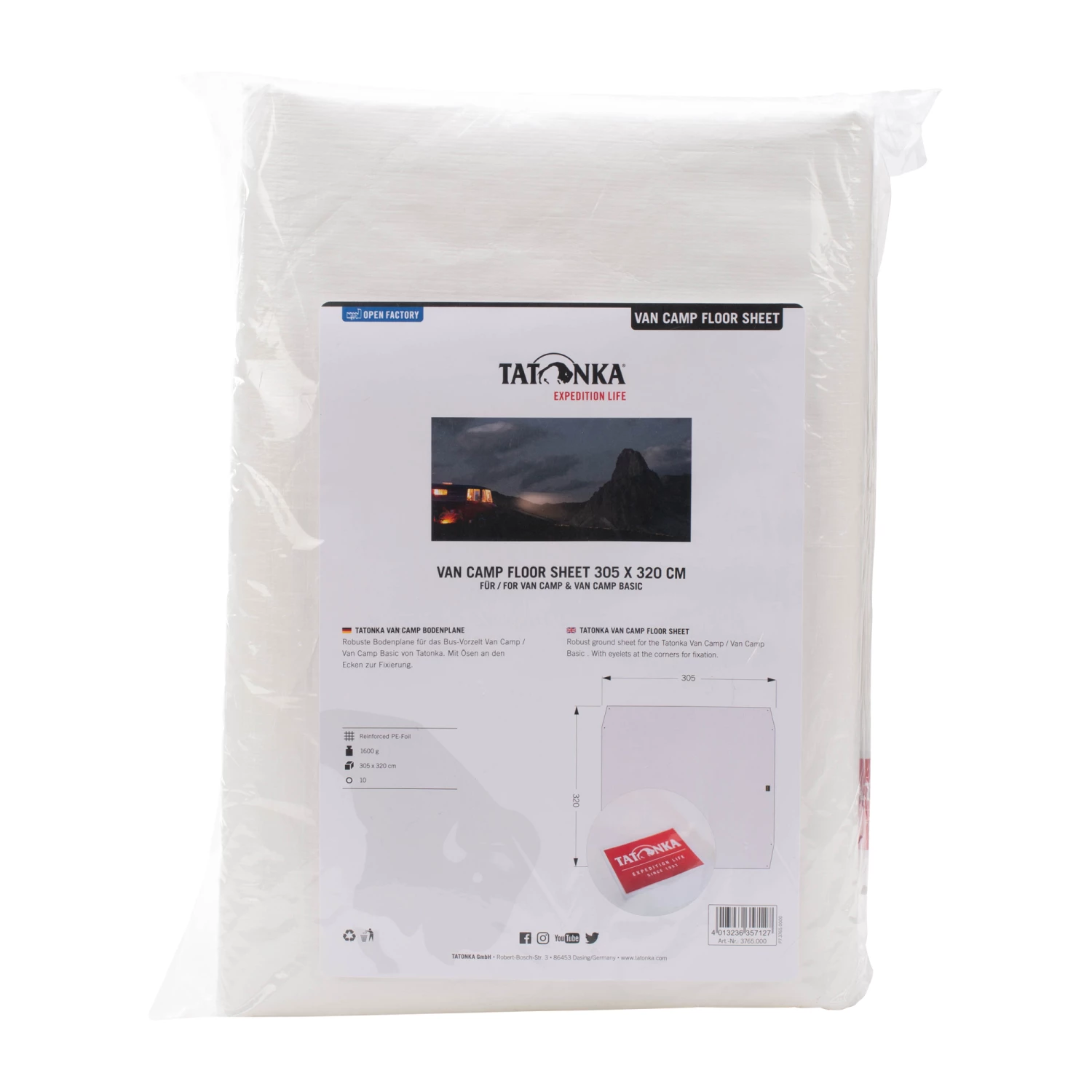 Das Tatonka Van Camp Floor Sheet 305 x 320 cm ist eine passgenaue Zeltunterlage für die Tunnelzelte Van Camp und Van Camp Basic. Diese sind Vorzelte zum Anbau an Camping-Busse verschiedener Marken. Durch die Ösen an den Ecken kannst Du sie fixieren.