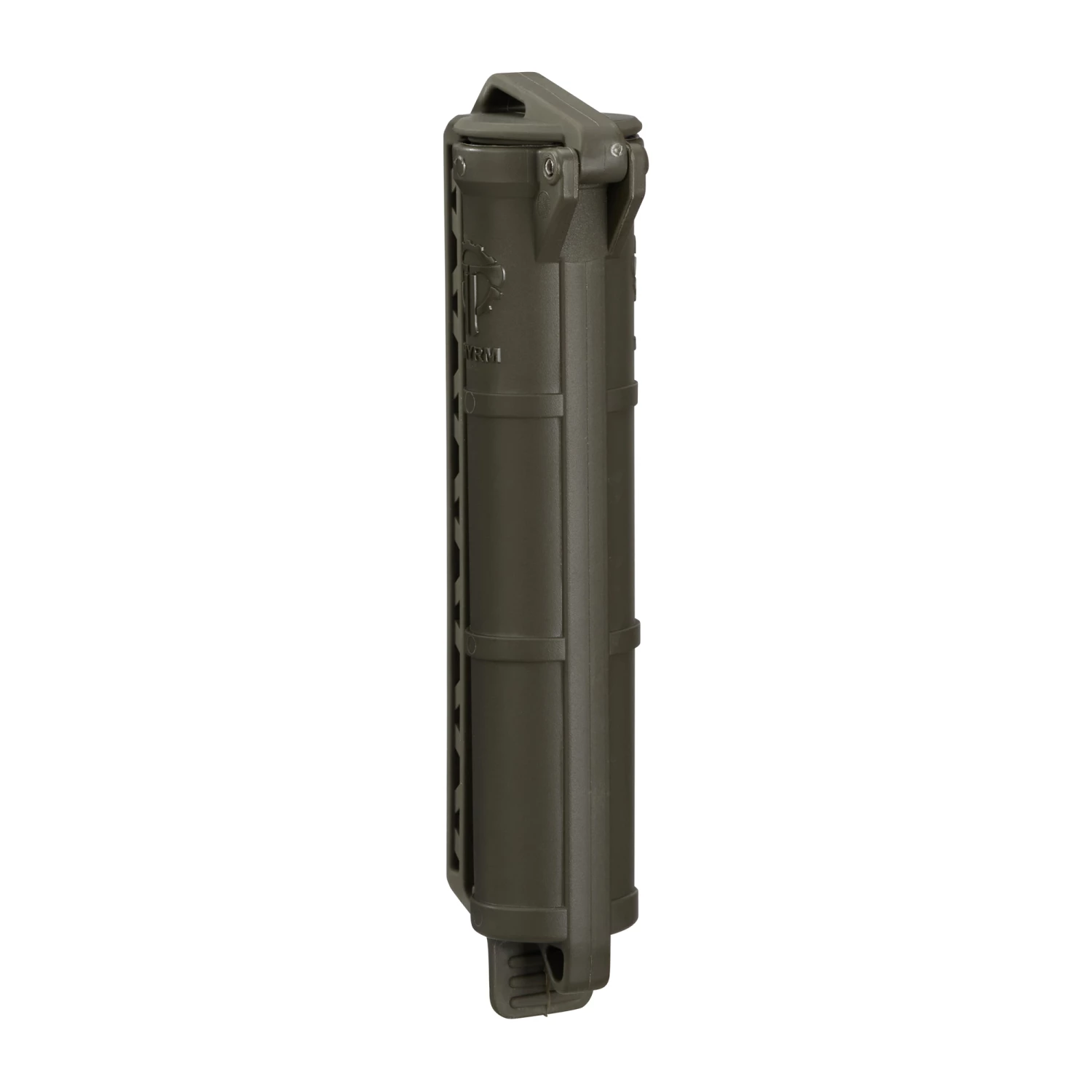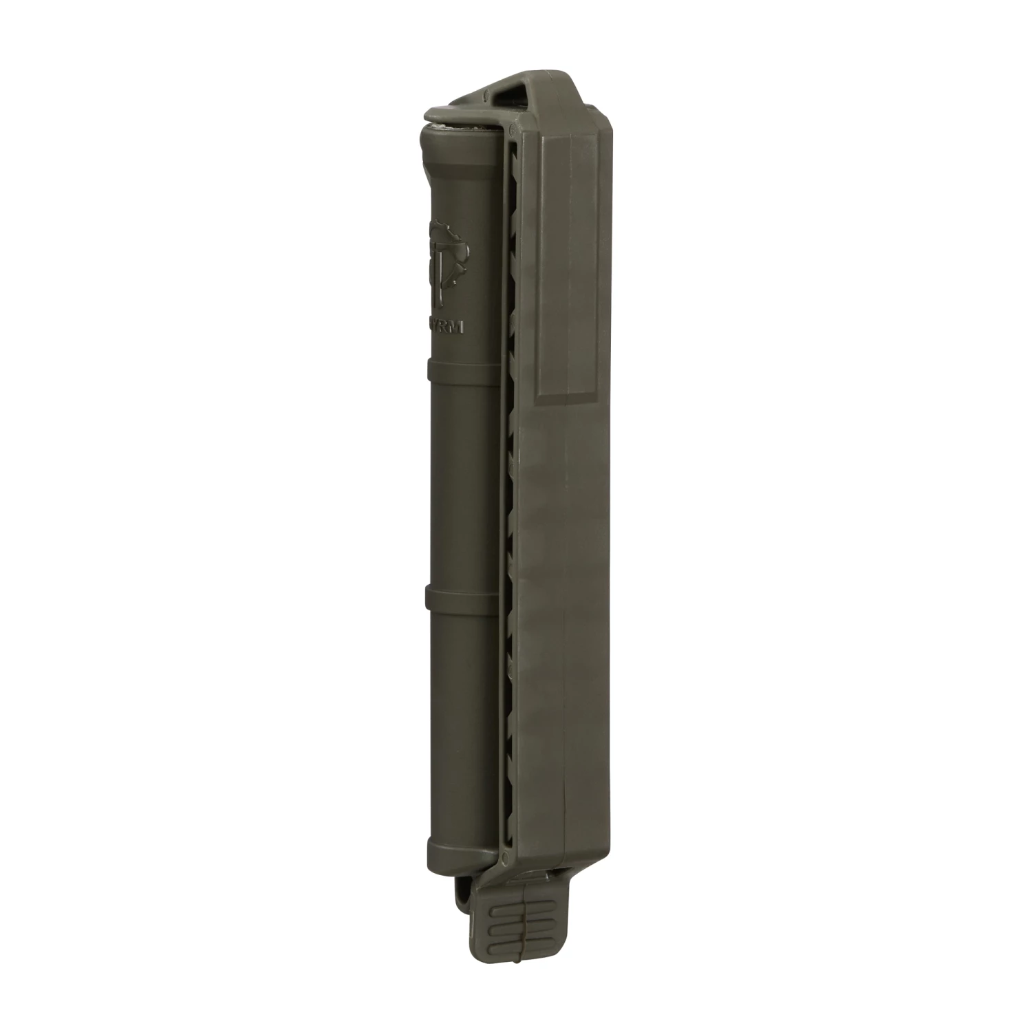 Der originelle Thyrm Batteriehalter CellVault Battery Storage lässt sich leicht an Molle-Systemen, Gurtbändern und Riemen anbringen. An beiden Enden verfügt er über Lanyard-Schlaufen für weitere Befestigungsoptionen. Das schlanke Profil des CellVaults nimmt lediglich eine vertikale Gurtbandreihe in Anspruch und bietet auf diese Weise genügend Raum für andere Ausrüstung. Neben Batterien können Sie auch kleinere Gegenstände wie Streichhölzer, einen Leuchtstab oder Leinen wasserabweisend und staubdicht verstauen. Der integrierte Gurtclip garantiert einen direkten und schnellen Zugriff auf den Inhalt.