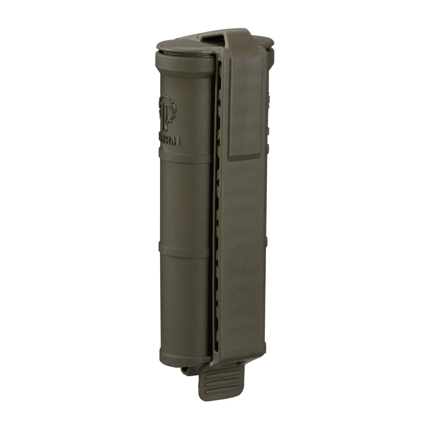 Der originelle Thyrm Batteriehalter CellVault XL Battery Storage lässt sich leicht an Molle-Systemen, Gurtbändern und Riemen befestigen. An beiden Enden verfügt er über Lanyard-Schlaufen für weitere Befestigungsoptionen. Die XL Version des CellVaults besitzt einen inneren Trenner für eine übersichtliche Organisation. Das schlanke Profil nimmt lediglich eine vertikale Gurtbandreihe in Anspruch und bietet auf diese Weise genügend Raum für andere Ausrüstung. Neben Batterien können Sie auch andere Ausrüstung wie Streichhölzer, einen Leuchtstab oder Leinen wasserabweisend und staubdicht verstauen. Der integrierte Gurtclip garantiert einen direkten und schnellen Zugriff auf den Inhalt.