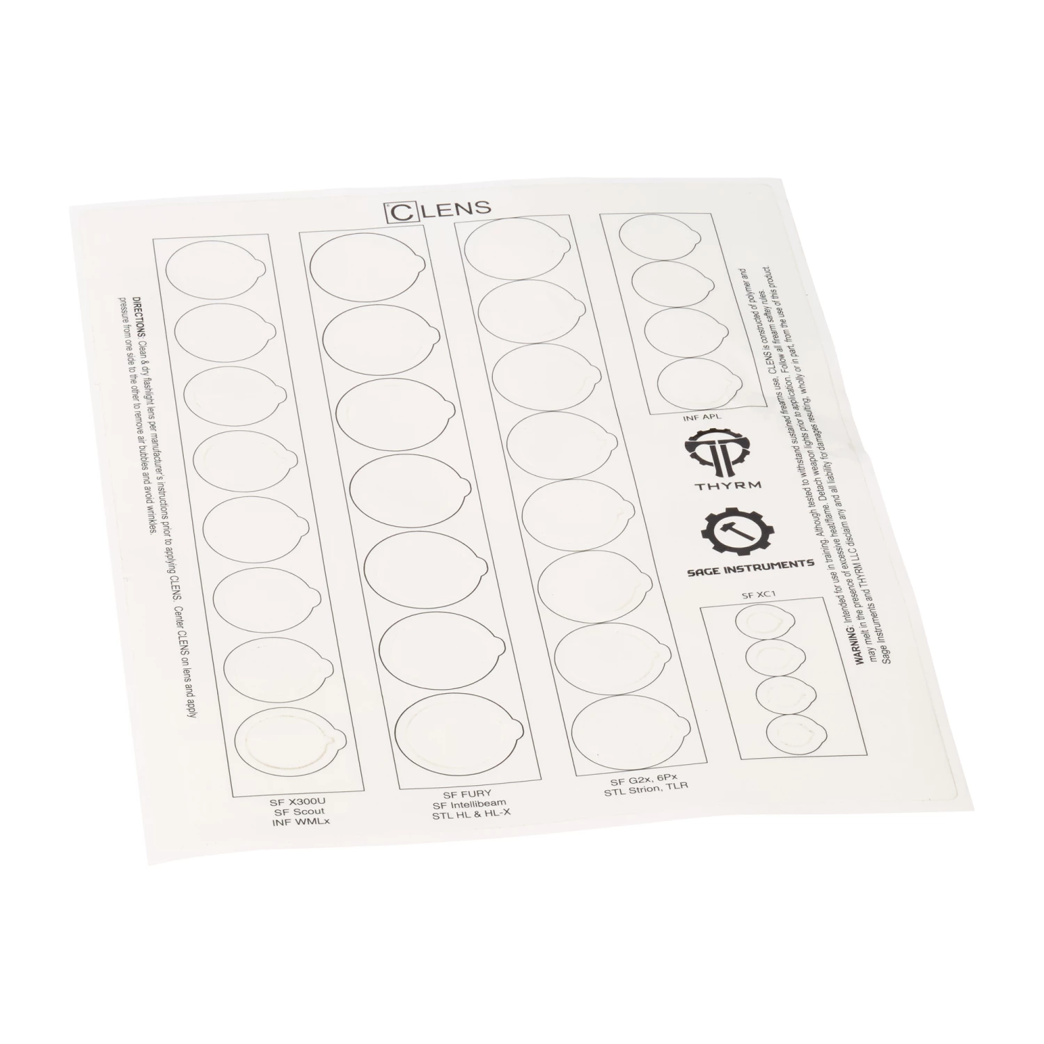 Die Thyrm Schutzfolien Clens Lens Protectors sind kompatibel mit einer Vielzahl von Taschenlampen- und Waffenlichtlinsen. Sie bestehen aus hitzebeständigem Kunststoff und schützen das Objektiv vor Staub, Dreck und anderen Rückständen, die sich beispielsweise während des Schusswaffentrainings bilden.