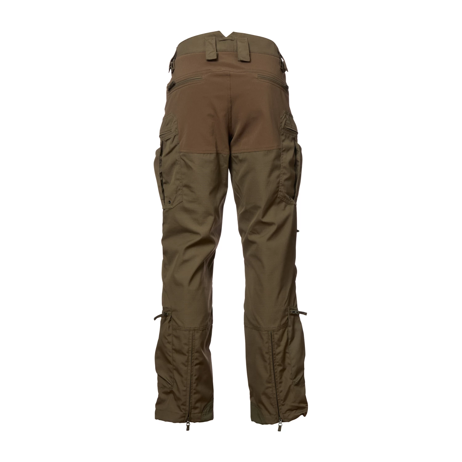 Zum Unterbringen kleinerer Ausrüstungsgegenstände vom Taschenmesser bis zum Reservemagazin, ist im vorderen Oberschenkelbereich eine kleine Gear- Tasche eingearbeitet. Die großen Unterschenkeltaschen können mittels Elastikzug und Reißverschluss enger gestellt werden.